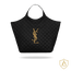 Maxi tote acolchado con silueta trapezoidal tipo shopper, monograma metálico sobredimensionado al centro y asa superior. Look contemporáneo con estética “elevada” y tacto suave.